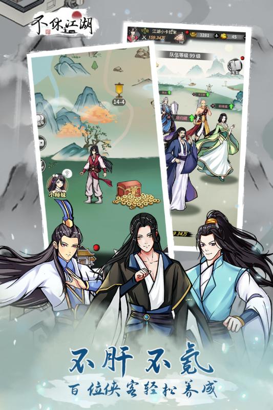 《不休江湖》是一款充满江湖风情的挂机手游,以其轻松的风格和高自由度的玩法吸引了众多玩家。游戏中拥有丰富的武功系统,玩家可以自由探索千奇百怪的武学,与豪杰同游、除暴安良,甚至觅得红颜知己共赏名山大川。Q版画风搭配轻松自在的挂机玩法,让玩家体验到江湖的休闲一面。无论是想成为名声显赫的豪侠,还是过上隐士般的生活,《不休江湖》都能满足你的需求。 游戏亮点包括海量福利、全新武学、十二门派上千武学、极致美术效果以及全新的困难副本挑战。此外,还有丰富的丹药配方和兑换码奖励等待玩家发掘。游戏不仅有离线和在线奖励,VIP经验也可通过每日签到获得,使得0元党也能畅玩。总体而言,《不休江湖》为玩家提供了一个既有趣又充满挑战的武侠世界。